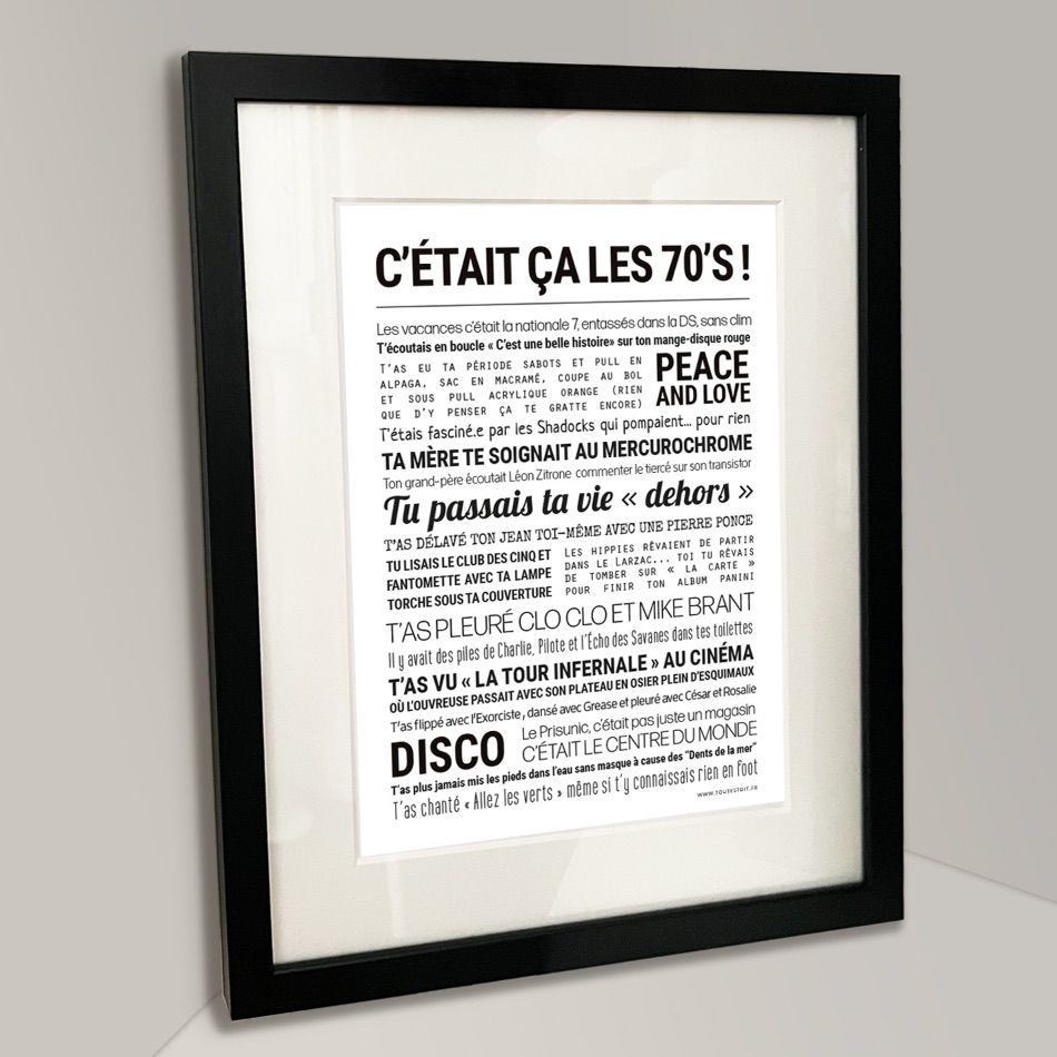 L’affiche cadeau idéal pour la génération 70, ou ceux qui ont grandi dans les 70’s…. de la Nationale 7 à Prisunic, tout y passe !