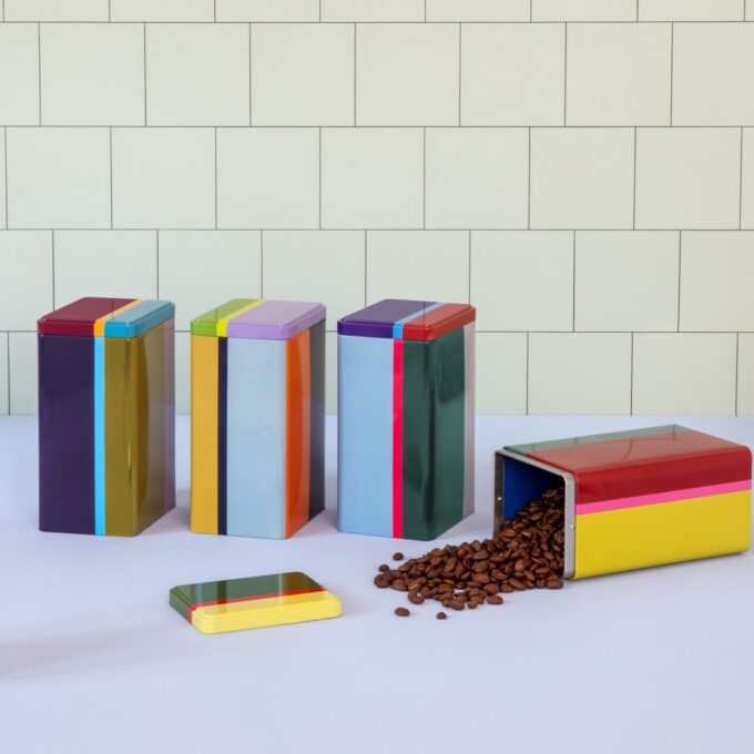 Une boite en métal laqué, association de deux couleurs « fun », souligné par un filet doré, la boite pour ranger et/ou cacher… ce que vous voulez !