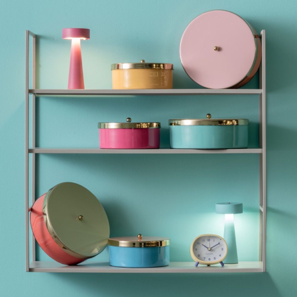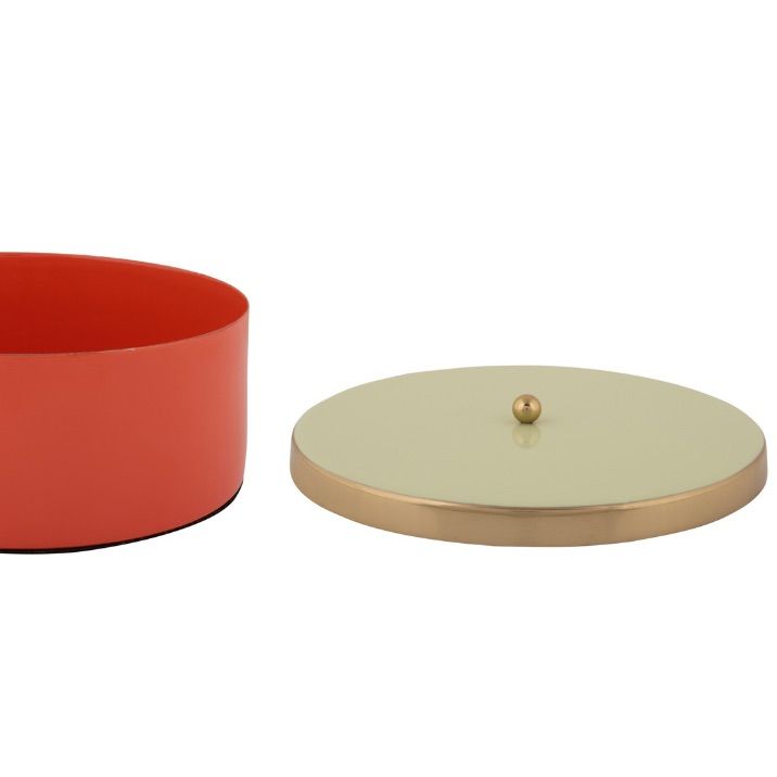 Une boite en métal laqué, association de deux couleurs « fun », souligné par un filet doré, la boite pour ranger et/ou cacher… ce que vous voulez !