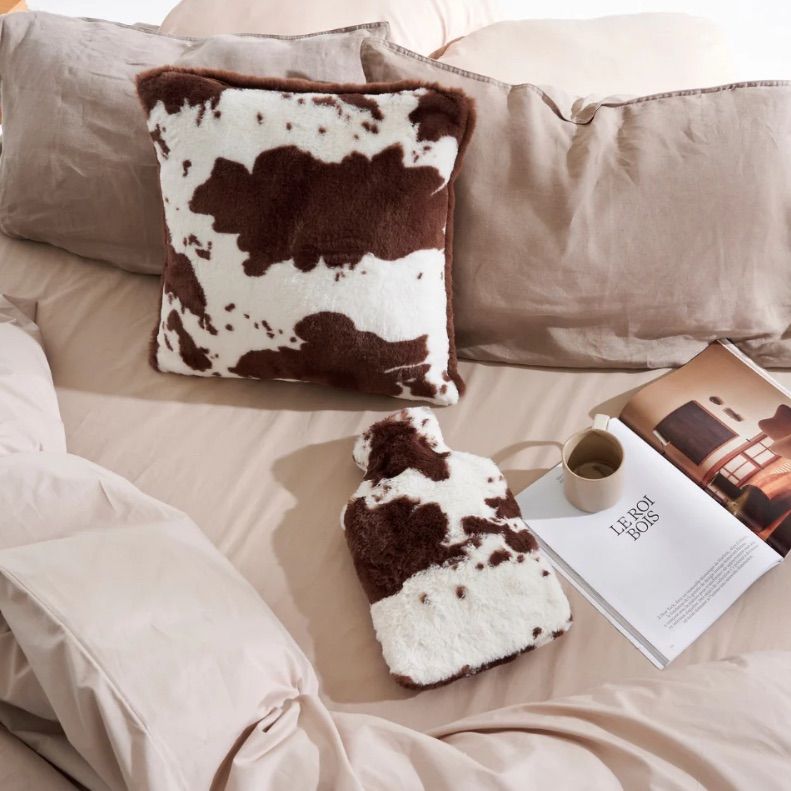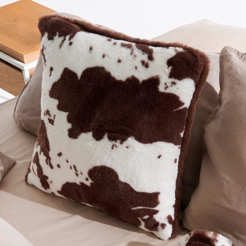 Un souffle d’évasion dans vos intérieurs. Le coussin fausse fourrure Far West marie motif vache et douceur cocooning pour une déco qui a du caractère.