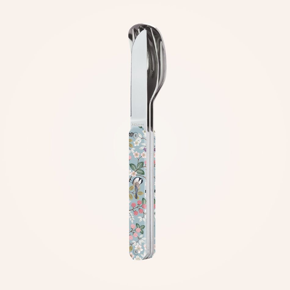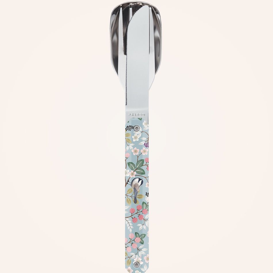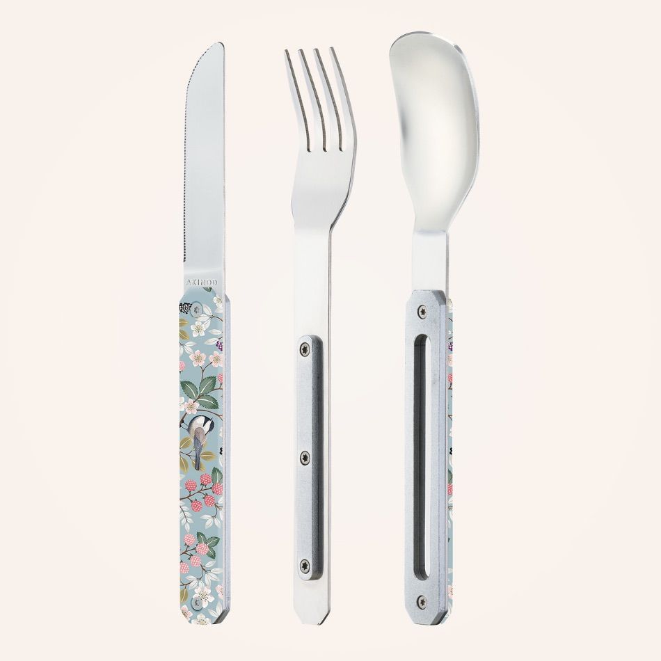 Couverts en acier inoxydable, composé d’une grande cuillère, d’une fourchette 4 dents et d’un couteau à lame micro dentée. Assemblage aimanté ce qui permet de regrouper en « 2 clics » les couverts ensemble…. Ils sont prêt à être à nouveau utilisés ! et ils sont toujours ensemble !