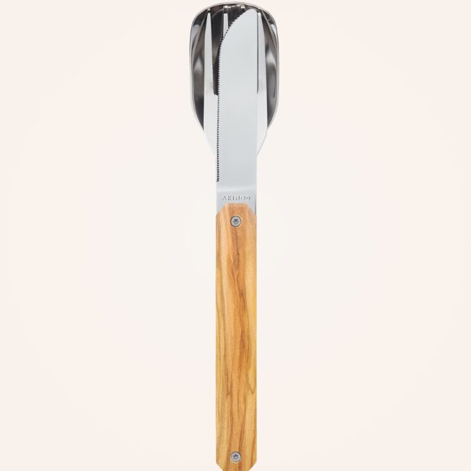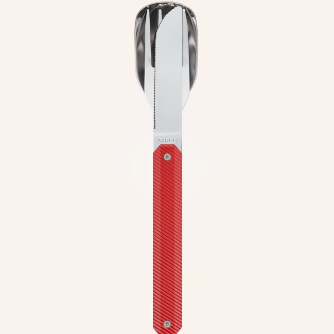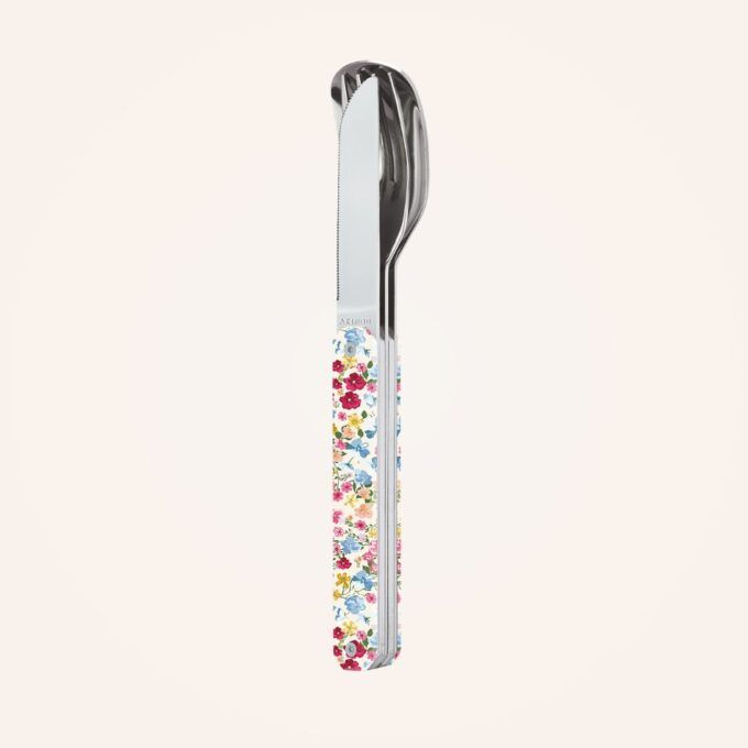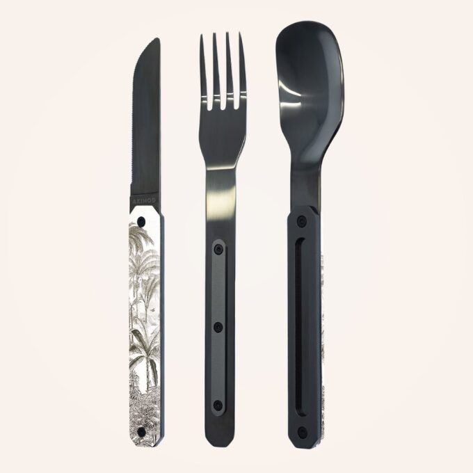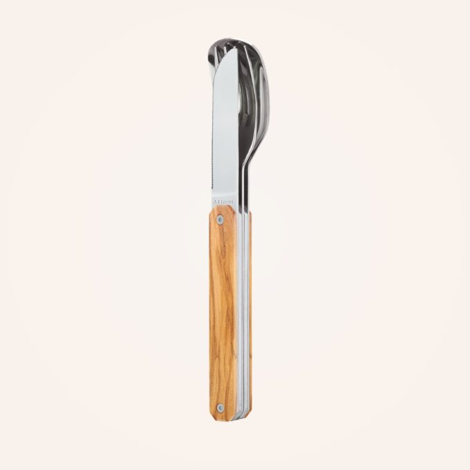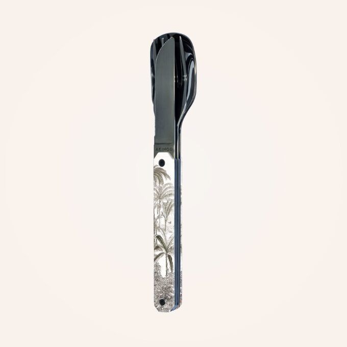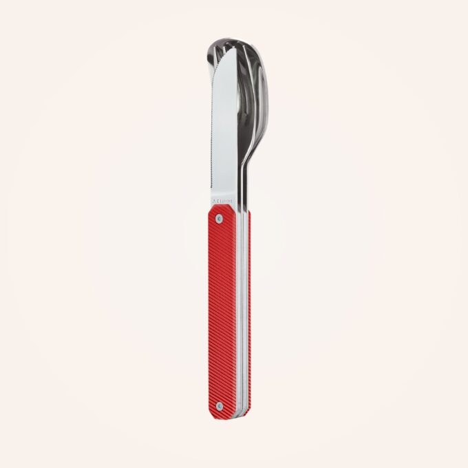 Couverts en acier inoxydable, composé d’une grande cuillère, d’une fourchette 4 dents et d’un couteau à lame micro dentée. Assemblage aimanté ce qui permet de regrouper en « 2 clics » les couverts ensemble…. Ils sont prêt à être à nouveau utilisés ! et ils sont toujours ensemble !