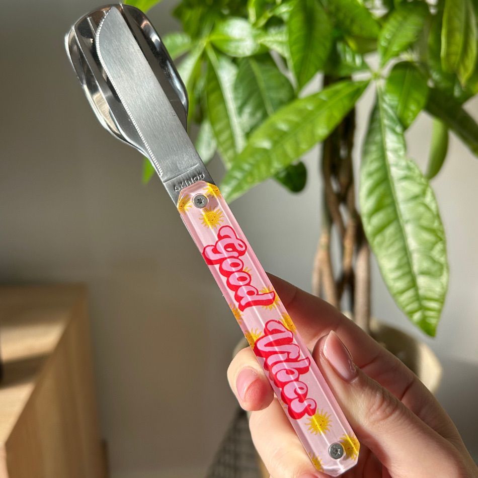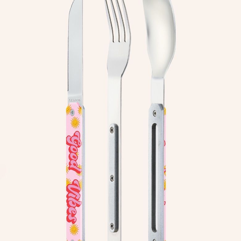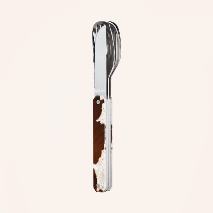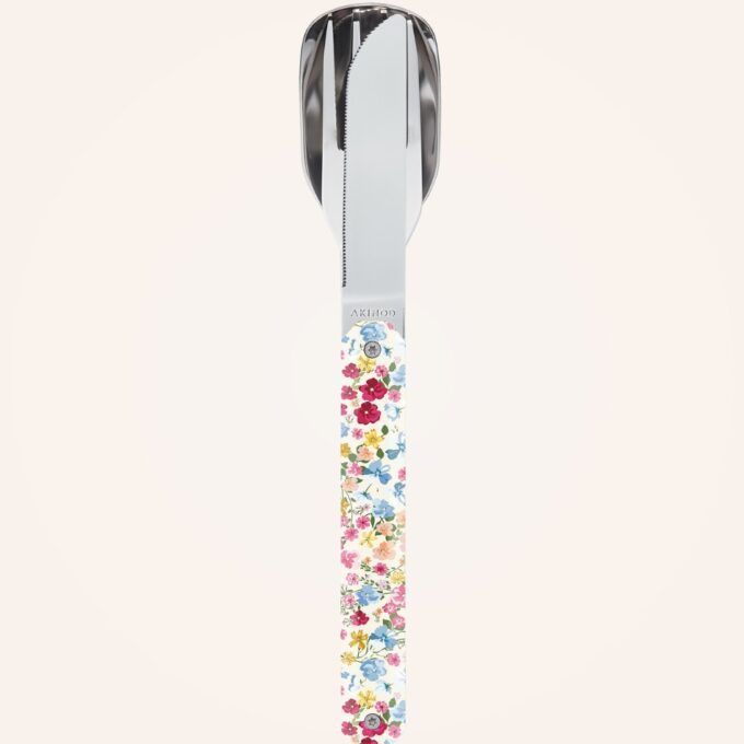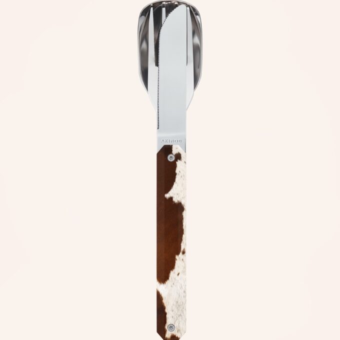 Couverts en acier inoxydable, composé d’une grande cuillère, d’une fourchette 4 dents et d’un couteau à lame micro dentée. Assemblage aimanté ce qui permet de regrouper en « 2 clics » les couverts ensemble…. Ils sont prêt à être à nouveau utilisés ! et ils sont toujours ensemble !
