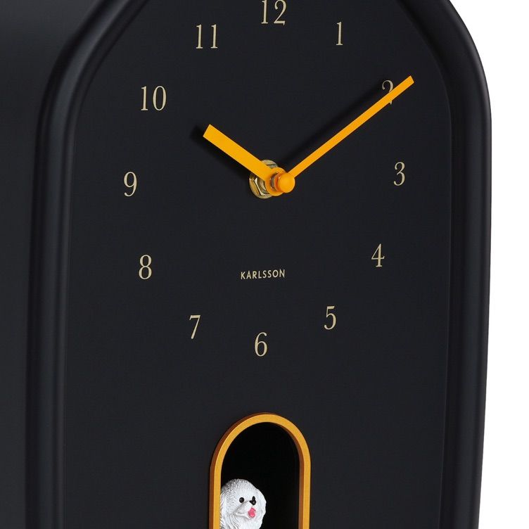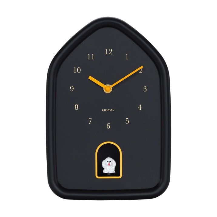 Une horloge en forme de maison qui abrite dans sa niche un petit chien….. qui sort gentiment toutes les heures et aboie (doucement) pour vous informer qu’il est « ‘l’heure pile ». Ce petit chien vous tiendra compagnie tous les jours et émerveillera tous vos visiteurs !