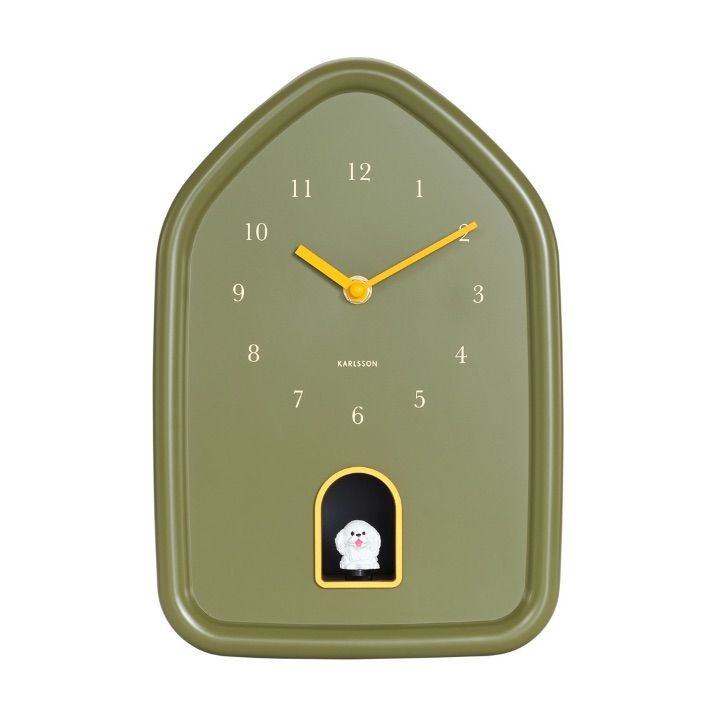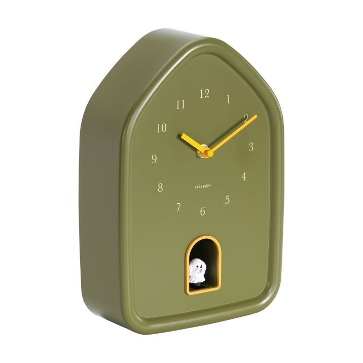 Une horloge en forme de maison qui abrite dans sa niche un petit chien….. qui sort gentiment toutes les heures et aboie (doucement) pour vous informer qu’il est « ‘l’heure pile ». Ce petit chien vous tiendra compagnie tous les jours et émerveillera tous vos visiteurs !