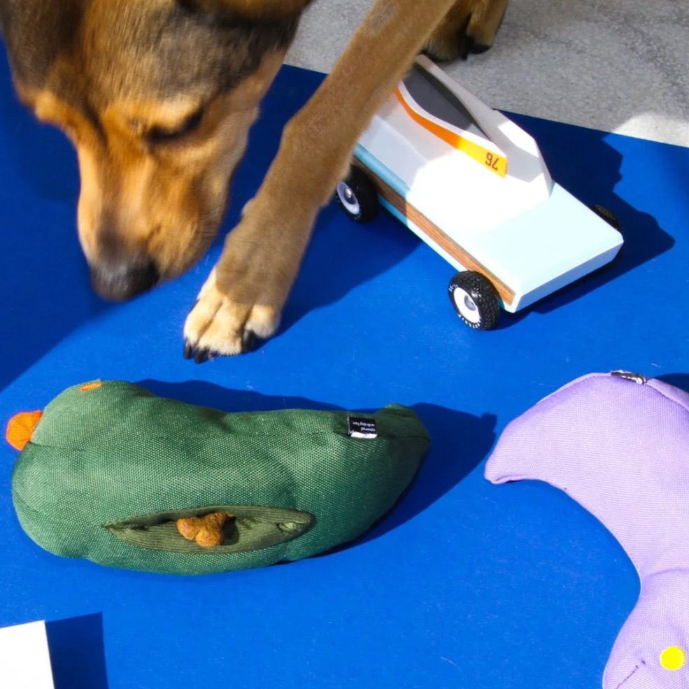 Découvrez ce jouet pour chien : écologique, fabriqué à partir de bouteilles en plastique recyclées et de tissu Better Cotton™. Une fente permet de cacher une (ou plusieurs…) croquette(s) à l’intérieur… cela stimulera votre chien et il aura encore plus de plaisir à jouer !
