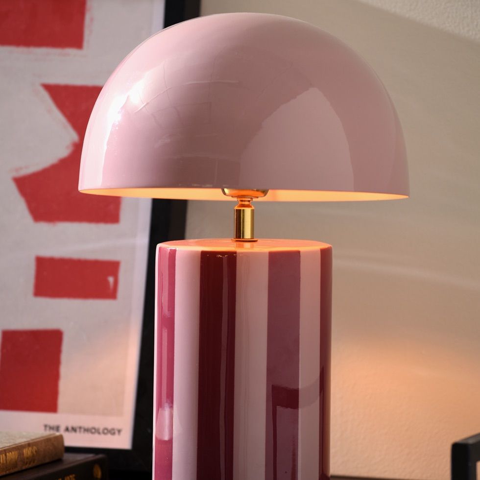 Un pied de lampe élégamment rayé, un abat jour en ton sur ton, une lampe élégante, un esprit année 30 ?