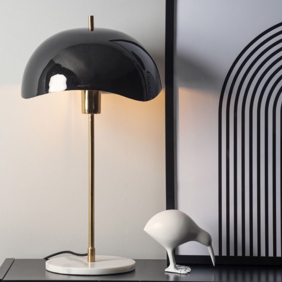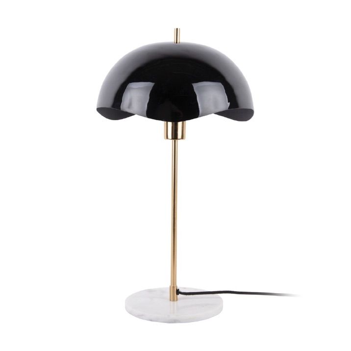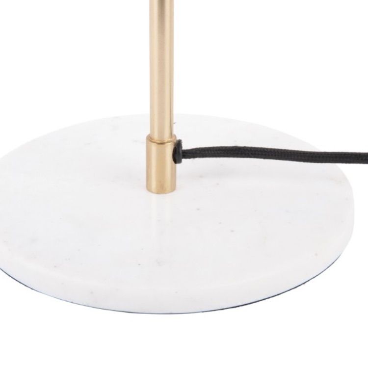 Un abat jour métallique légèrement ondulé, une tige coloris laiton et un pied en marbre blanc confère à cette lampe un aspect intemporel, chic, adapté à tous les intérieurs.