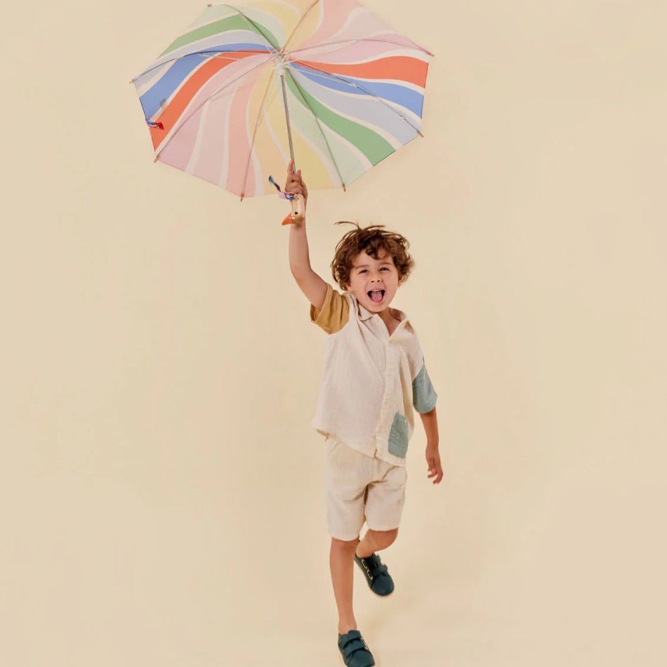 Un motif simple, coloré, ensoleillé, idéal pour faire adopter le parapluie par un enfant. Il va adorer cette palette de couleurs !