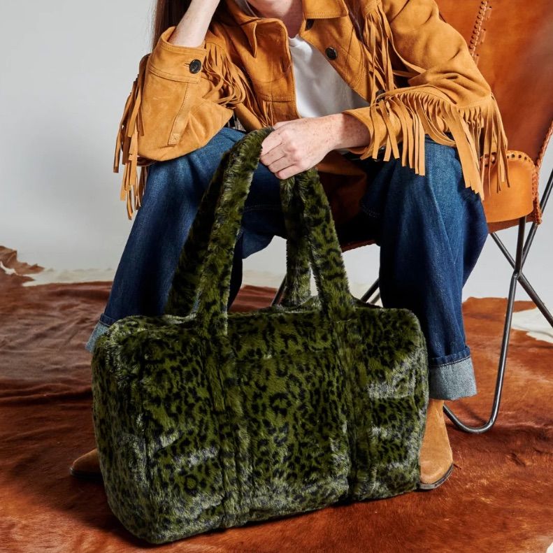 Le sac qui donne envie de câliner ses bagages. Léopard kaki, ultra doux et spacieux, il vous accompagne partout avec style et confort.