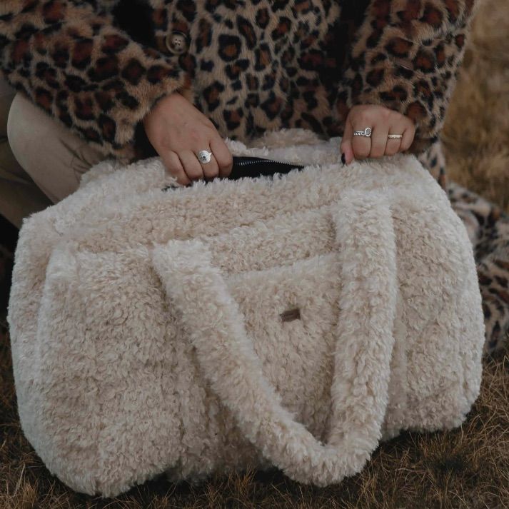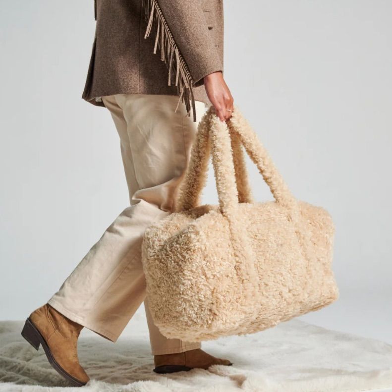 Partez en week-end avec style. Ce sac en bouclette beige est le sac qui conjugue praticité et audace, douceur et caractère. Un vrai sac de voyage qui donne envie de partir, rien que pour l’emmener.