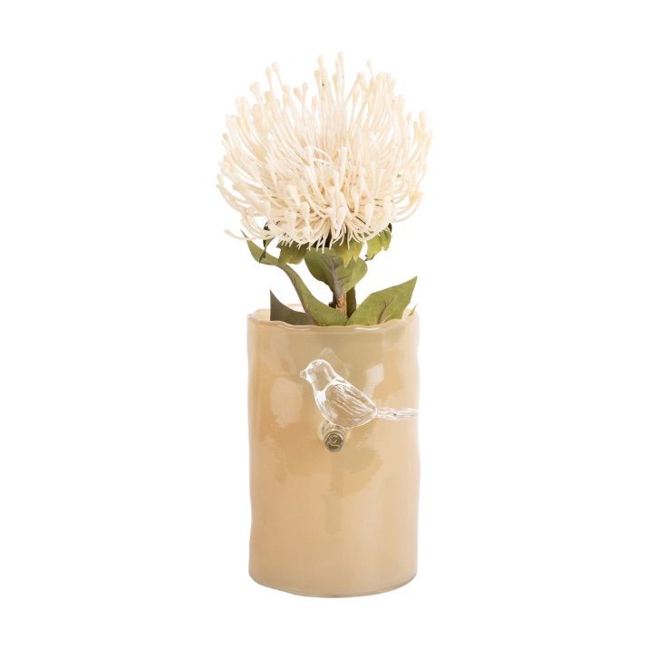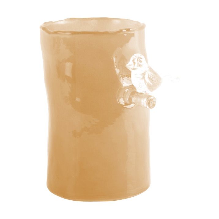 Tout en verre, un oiseau rencontre une branche qui elle même rencontre un vase…. Beau, pratique, original.